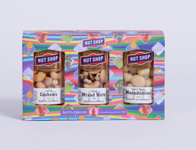 Salted Cashews, Salted Mixed Nuts and Slated Whole Macadamias.